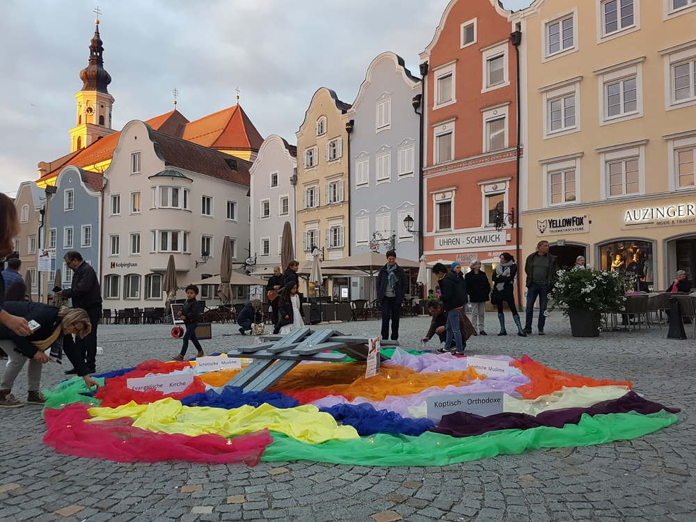 Es wurde für das Interreligiöse Gebet unter dem Motto „Miteinander leben ist schöner“ vorbereitet. Mehr als 100 Personen folgten der Einladung der Vertreter der verschiedenen Glaubensgemeinschaften, um ein Zeichen für ein gutes Miteinander in unserem Land zu setzen. „Unsere Religionen können Verbindungen herstellen und zu Brücken werden in unserer bunten Gesellschaft“, hieß es in der Begrüßung.