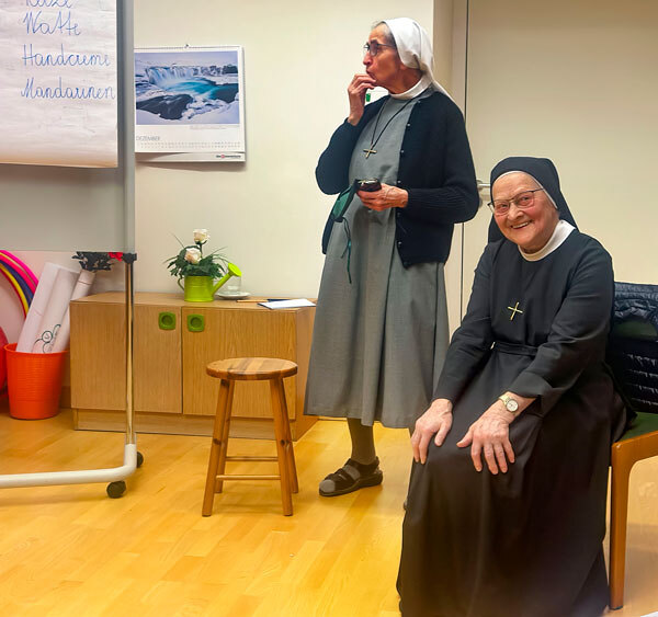 Jede Woche wechseln sich zwei Gruppen Nonnen der Ordensgemeinschaft der Kreuzschwestern zum SelbA-Training in Linz ab. An den geraden Kalenderwochen trainieren bis zu 14 Nonnen mit SelbA-Trainerin Maria Koller. Die Teilnehmerinnen dieser Gruppe zählen zu den ältesten, die regelmäßig in Oberösterreich nach dem SelbA-Programm trainieren.