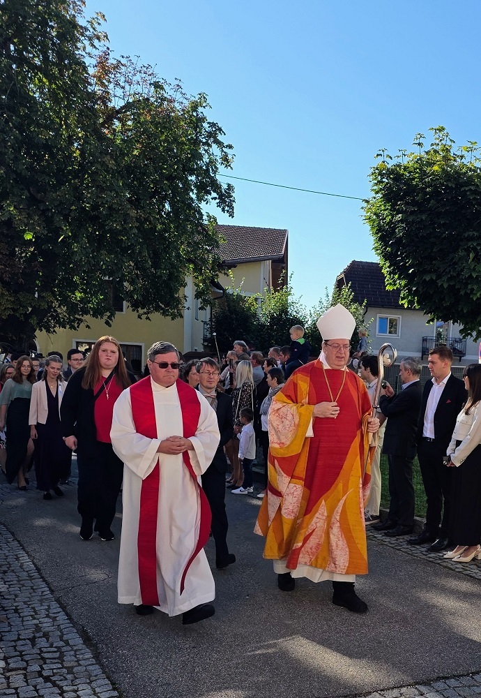 Die Feier fand bei herrlichem Wetter in der Pfarrkirche St. Florian statt und wurde von Abt Maximilian Neulinger aus dem Stift Lambach geleitet. Seine Predigt war geprägt von der Einladung, das eigene Leben aus dem Glauben zu gestalten, mutig nach vorne, aber auch auf einander zu schauen und Verantwortung in der Gemeinschaft zu übernehmen.