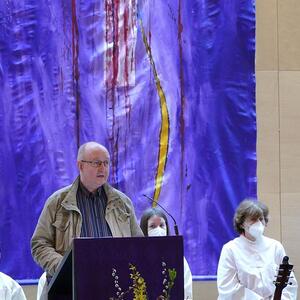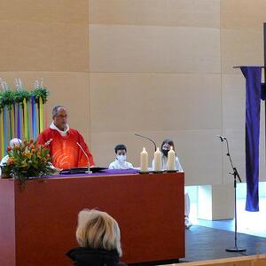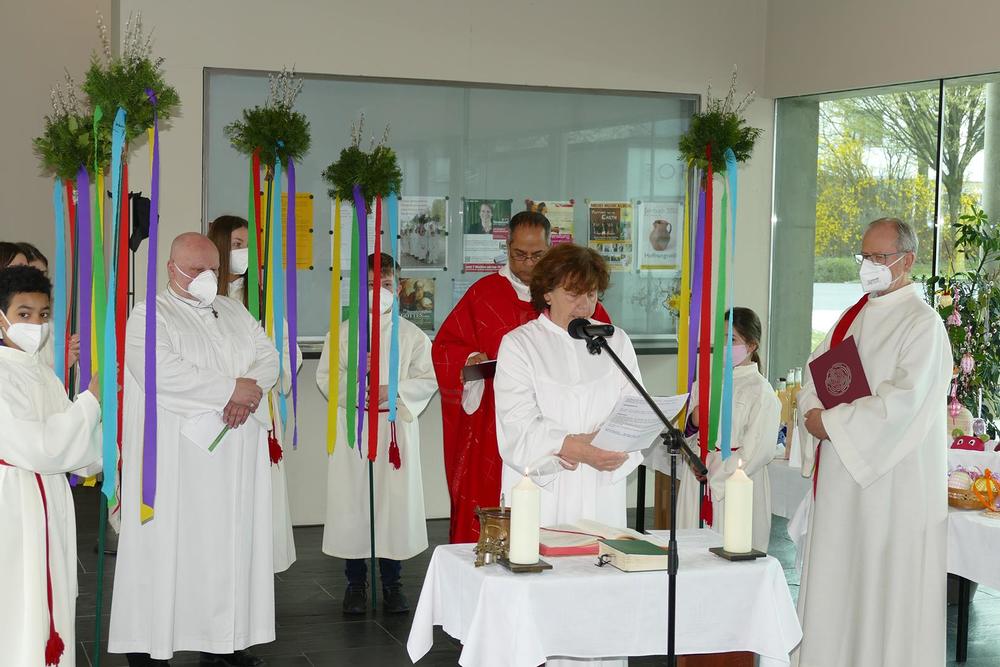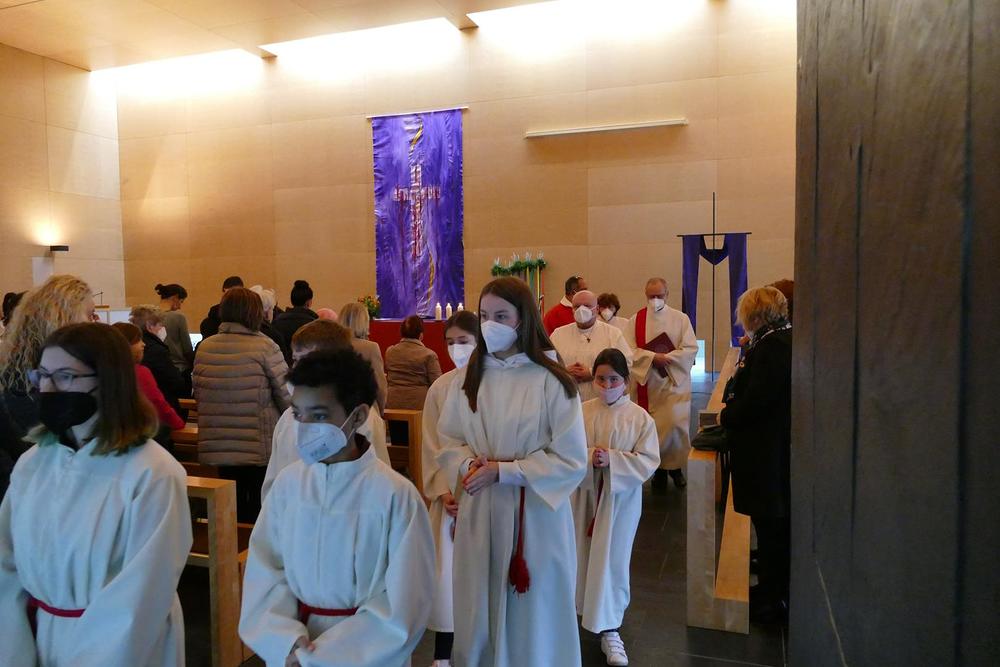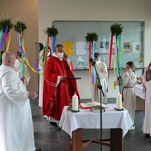 Nach der Palmweihe im Foyer zogen unser Pater Ransom mit den Wortgottesleitern und den Ministranten in die Pfarrkirche ein.