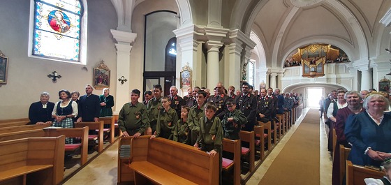 Im Anschluss an den Gottesdienst marschierten alle zum Gasthof Obrist, wo ein Frühschoppen mit Kuchenverkauf der Goldhaubenfrauen stattfand.