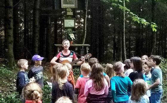 Am 25. Mai wanderten die Erstkommunionkinder mit ihren Müttern zur Maiandacht zum Maria vom Guten Rat-Bild.
