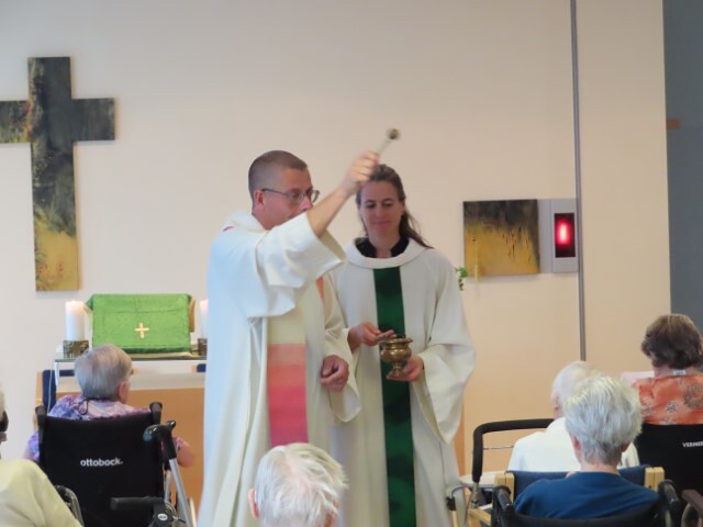 So segnete P. Stefan alle Rollstühle, Rollatoren, den Lift....... und alle Hilfen zur Mobilität.